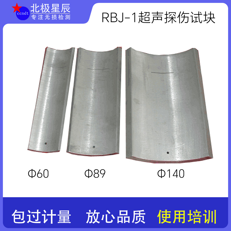 RBJ-1试块是一种依据JG/T 203-2007《钢结构超声波探伤及质量分级法》的建筑工业行业标准超声检测试块。 以下是具体介绍: 结构特点:直径有140mm、89mm、60mm这三种规格。 主要用途:用于评定钢结构焊缝根部未焊透程度。 在建筑钢结构网架焊缝探伤中,根部缺陷评定采用RBJ-1对比试块的φ3mm柱孔和0.3×0.1δ槽孔(δ为管件壁厚)的反射波高对比。 客户提供直径和壁厚,大于φ140mm 直